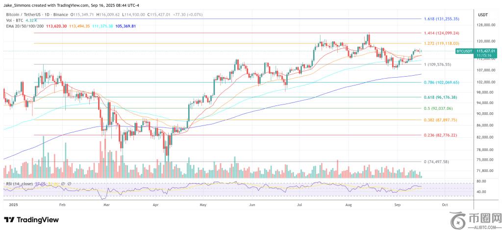 比特币在 FOMC 会议前维持在 115,000 美元以上,1 日线图 | 资料