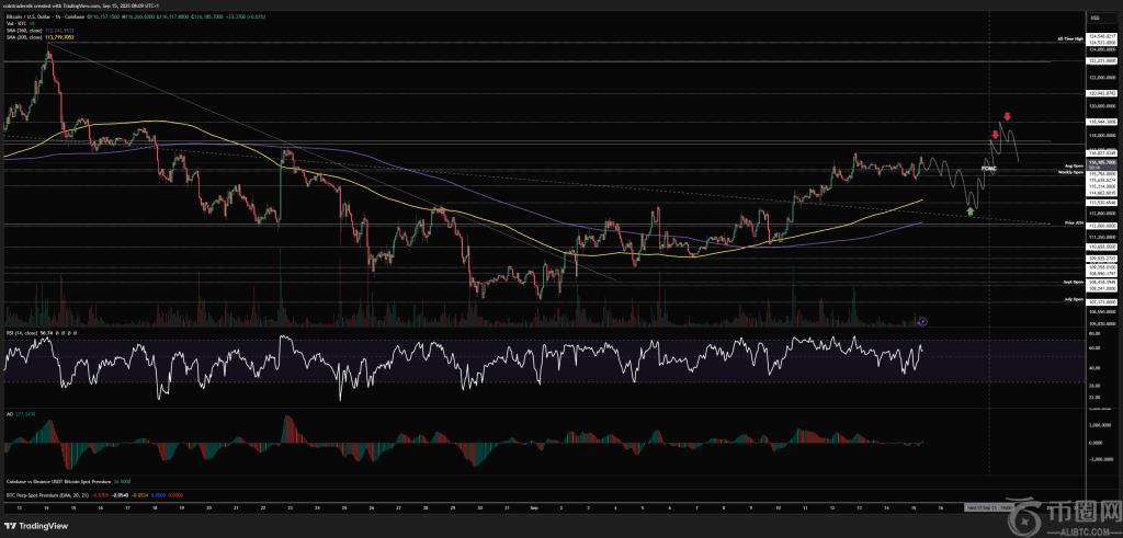 美联储将于9月17日(周三)宣布政策,一位备受关注的交易员制定了一套精准的、逐级推进的策略,以应对比特币的下一步走势。在9月15日发表的每周“市场展望#51”中,Ostium Research的Nik Patel(@cointradernik)围绕11.75万至12万美元的紧密阻力位以及11.2万美元的“底线”支撑位,勾勒出多头和空头的触发点。他认为,这些框架应该能够控制BTC在FOMC会议期间以及进入季度末的走势。