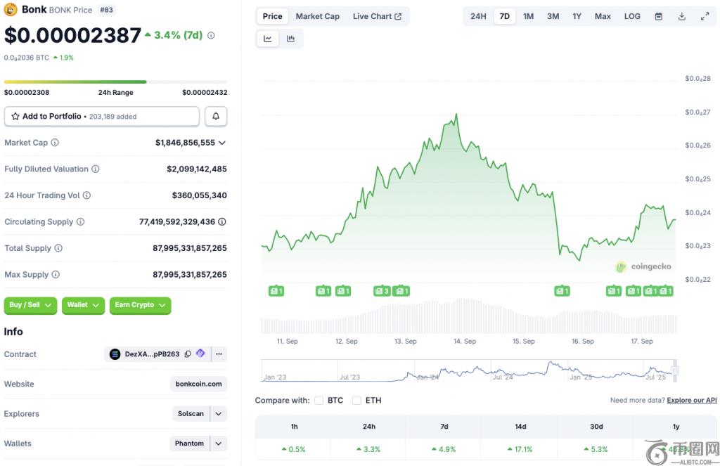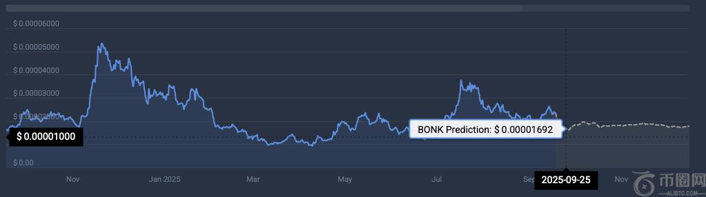 不过,投资者也有可能在近期上涨后获利了结。据 CoinCodex 称,BONK 将面临修正至 0.00001692 美元9月25日。