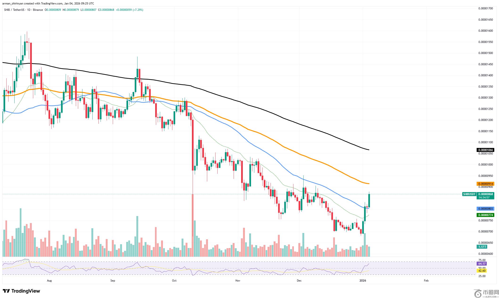 随着存入交易所的SHIB数量持续超过提取量,链上数据显示其储备规模不断攀升。这种供需失衡显著增强了卖方主导地位。尽管短期内不会立即引发恐慌性抛售,但滞留在交易所的**本质上属于可随时流通的流动性供给,主要用于抛售、对冲或抵押操作。这一趋势已在价格走势中初现端倪。