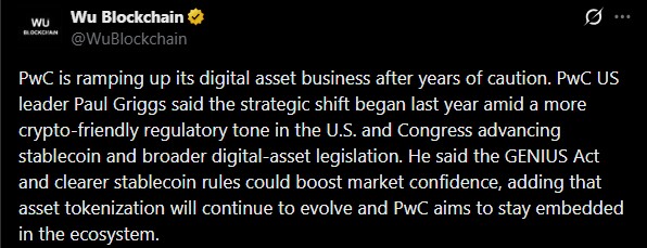监管明朗化推动普华永道加密战略加速