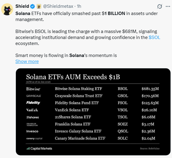 Bitwise Solana ETF引发机构投资者强劲抛售,规模突破10亿美元大关。