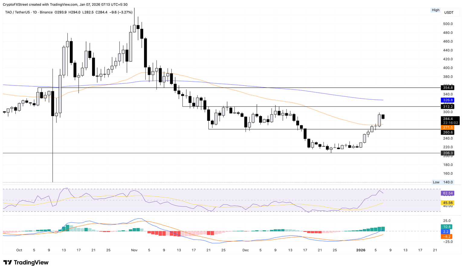 如果 TAO 跌破 260 美元,则可能进一步下跌至 206 美元水平,即 12 月 24 日的低点。