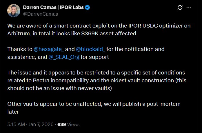 IPOR Fusion Vault 对 Arbitrum 平台的攻击:已确认全额退款。