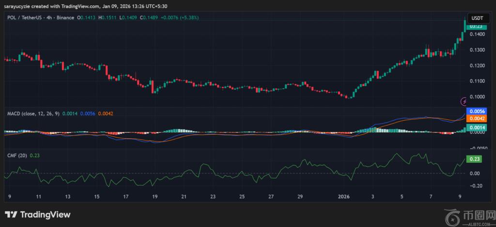 POL的MACD线已上穿信号线,暗示积极前景。若保持强势上行,上升动能或将持续。此外,位于0.23的CMF指标反映出Polygon(原MATIC)市场存在强劲买压。值得注意的是资金正持续流入,支撑看涨预期。