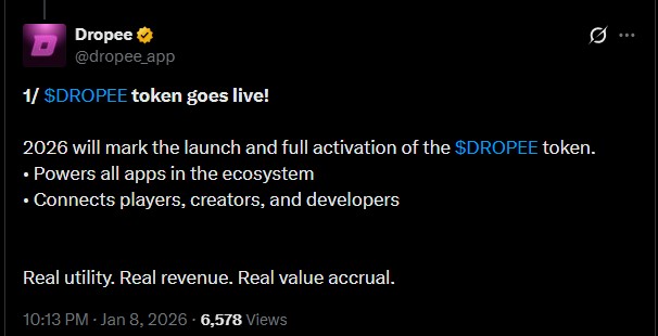 Dropee 的上市日期和价格看起来非常合适,有望在 2026 年 2 月至 3 月的**季度上市,这得益于其强大的用户数量、人工智能开发和全球合作伙伴关系。
