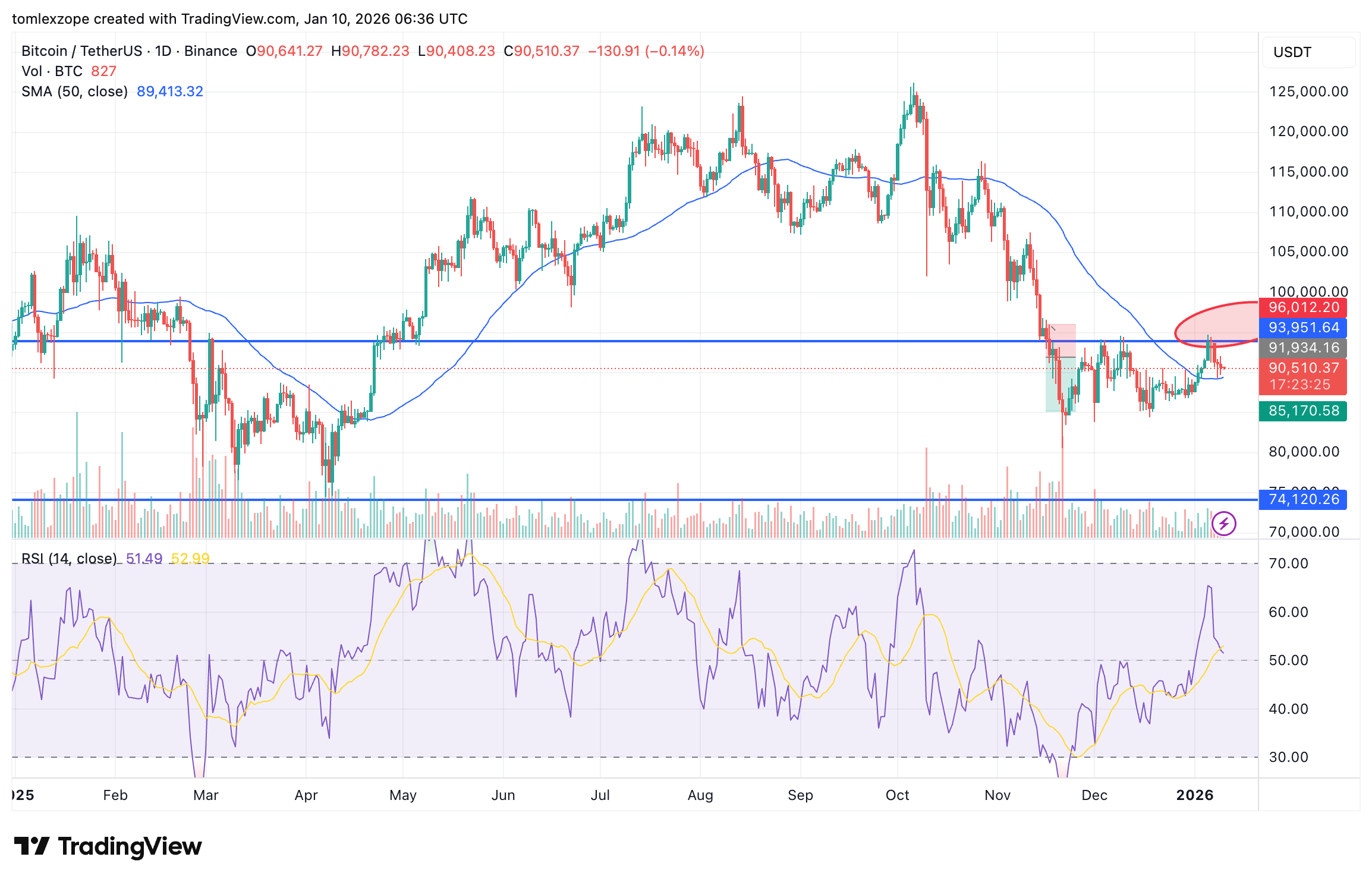 截至发稿,BTC价格为90,360美元,过去24小时下跌近1%。日线图显示价格处于震荡整理阶段,多空博弈加剧。