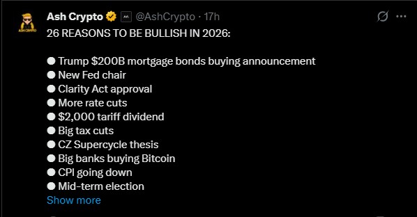 知名加密货币市场分析师Ash Crypto列出了“2026年看好加密货币市场的26个理由”,包括全球流动性增长、ETF获批、降息、通胀下降以及监管前景明朗。这些信号表明,像Dropee这样的新型加密**将迎来有利环境。