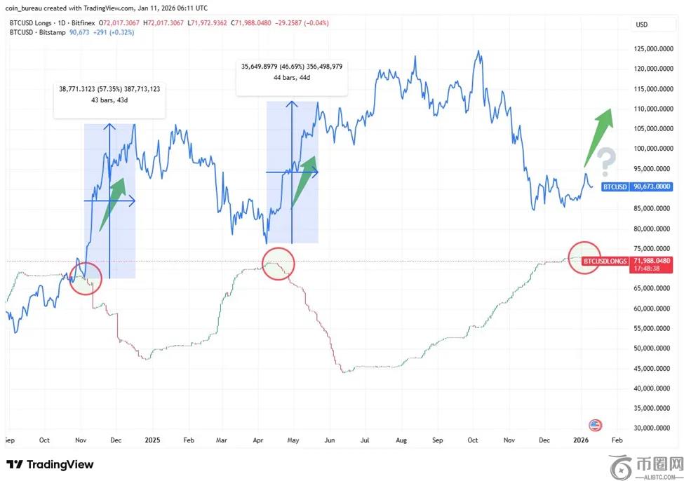 近期链上数据显示,部分大额持有者正在Bitfinex等平台上平仓其杠杆多头头寸。传统理解中,此类行为常被视为看跌信号,暗示市场预期转弱。然而,历史数据揭示了一个反直觉现象:比特币巨鲸往往在新一轮上涨前主动清理杠杆仓位。
