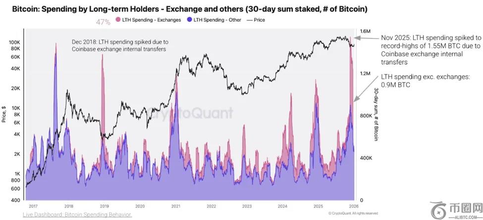 CryptoQuant分析师CryptoZeno指出,长期持有者账户的资金流出量已接近历史高点。通常情况下,此类行为被解读为需求减弱的标志,预示未来看跌。