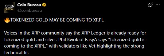 随着 XRP Ledger (XRPL) 声称支持链上黄金,**化黄金正在 XRP 社区引起广泛关注。