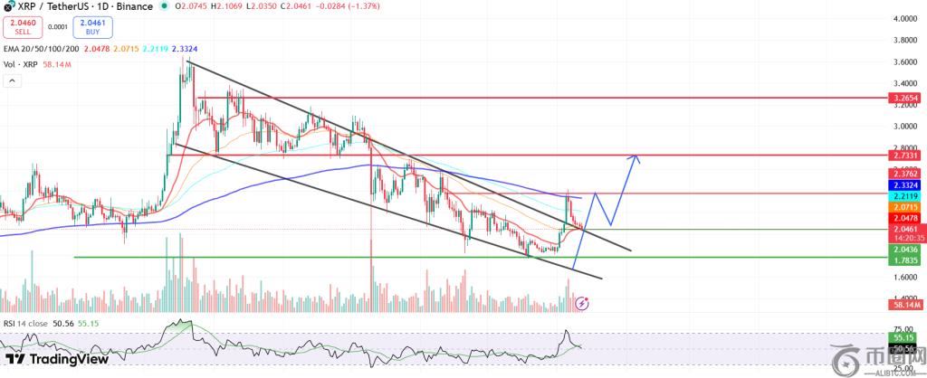 此外,XRP价格已重新获得20日与50日均线支撑,正逐步向2.30美元关键阻力发起冲击。该位置与200日均线区域高度重合,若能有效突破,将打开通往2.70美元的上升通道。