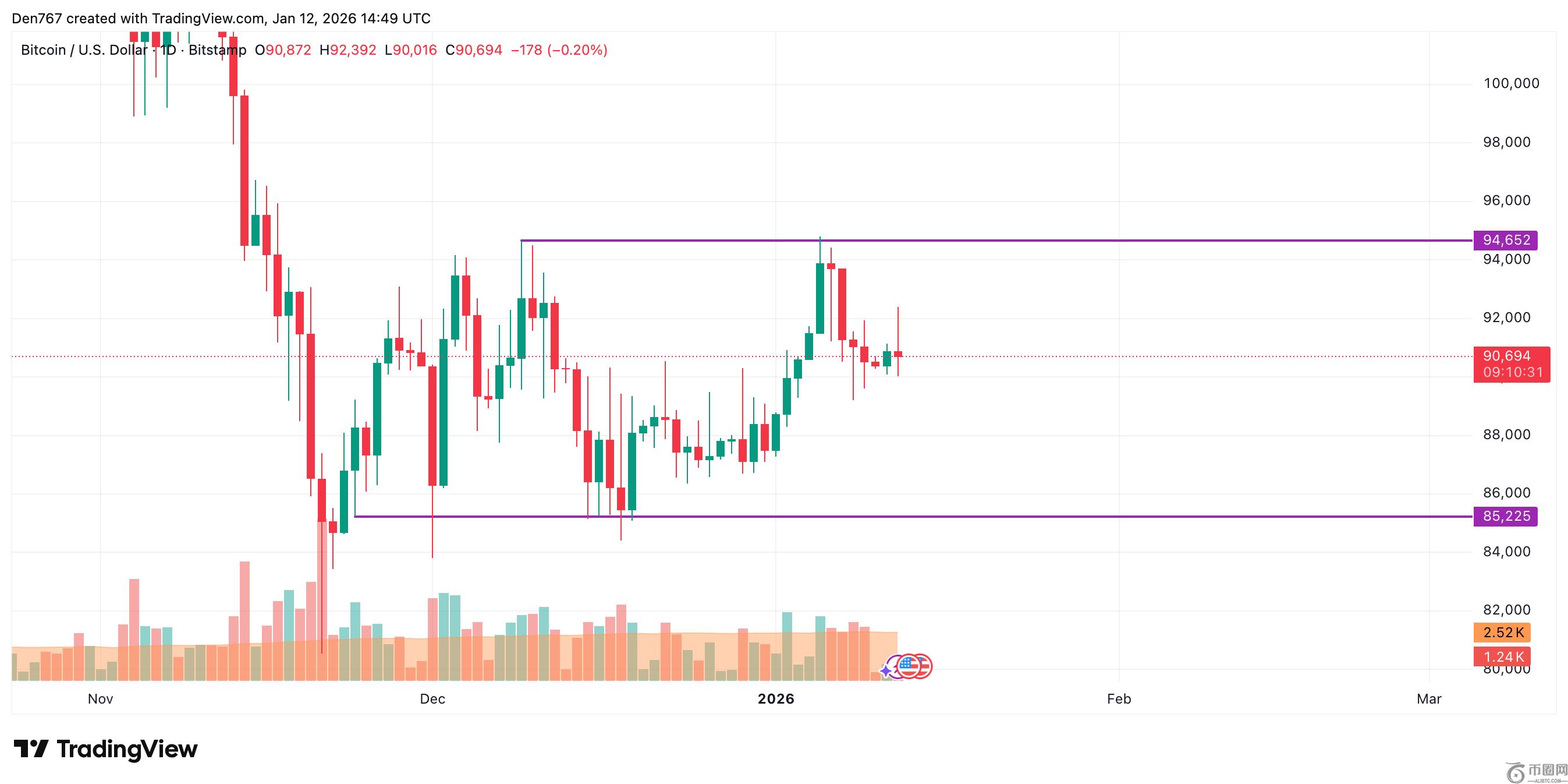 比特币横盘震荡:90,244美元支撑位考验,币安官方网注册入口最新地址