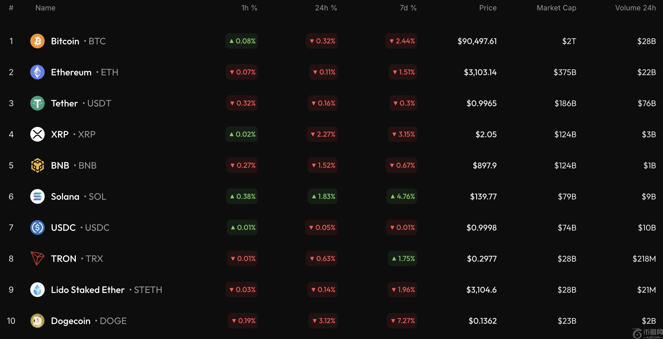 比特币(BTC)较昨日微跌0.32%,价格在90,800美元附近波动。