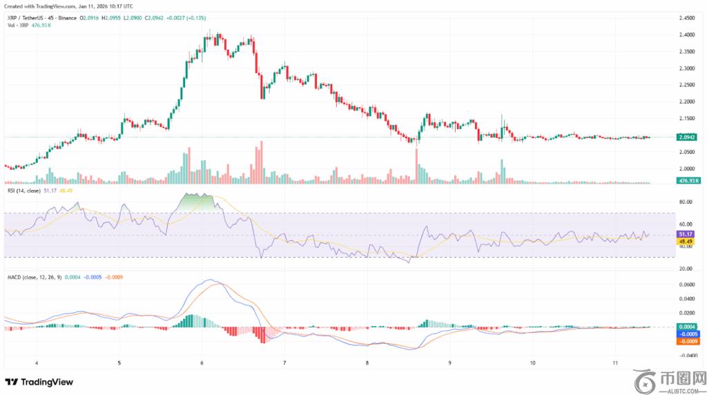 XRP的日线收盘缺乏明确方向,反映出买卖双方力量相对均衡。这一现象与整体市场的观望氛围高度一致,进一步加剧了投资者的谨慎态度。CRYPTOWZRD指出,XRP/BTC走势可能快速响应比特币主导地位的变化,凸显其被动跟随属性,而非独立**趋势。2.10美元区域对市场结构仍具关键意义,若能持续守住该水平,将有助于维持价格稳定性,但尚未形成明确的趋势反转形态。