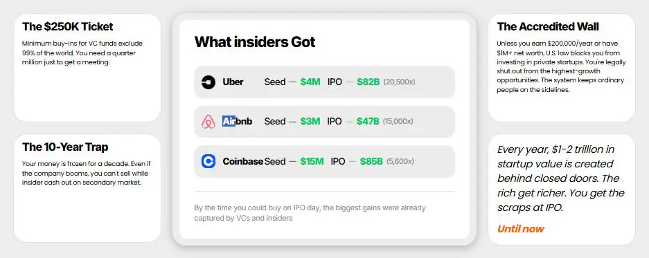 执行是否与愿景相符还有待观察。但其定位很明确:这是一次真正打破把关体系、实现私人市场财富创造民主化的尝试。大门已经敞开,问题是你是否愿意迈入其中。