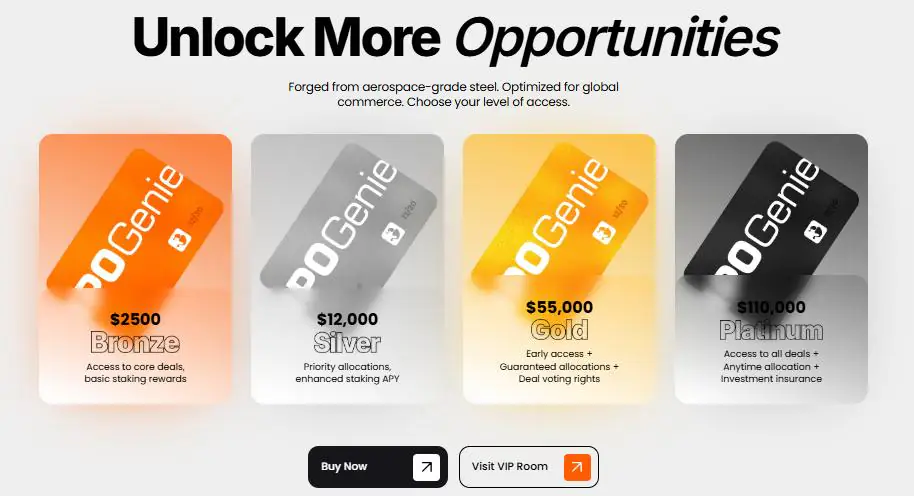 IPO Genie 通过分级系统构建参与机制,奖励持有较大股份的股东,同时将准入门槛大幅**,远低于传统风险投资: