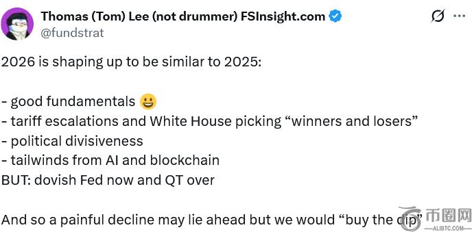 文章标题:Fundstrat创始人李预言:2026年开局将"痛苦" 年末有望反弹