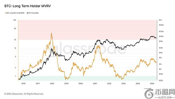 BTC长期持有者MVRV。资料
