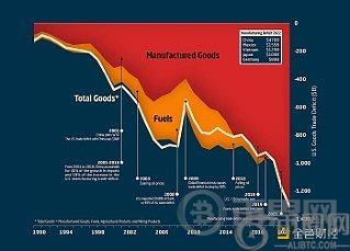 自20世纪90年代以来,美国将制造业外包至**、日本、德国及海湾**,每批进口货物都用新发行的美元支付。由于进口长期超过出口,美国持续维持巨额贸易逆差。贸易逆差即一国进口总额与出口总额之间的差额。