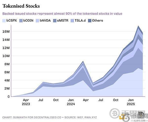 海外市场需求更为强烈。得益于宽松管制,外国投资者已持有约19万亿美元美国股票。传统路径是通过eTrade等本土券商(需与美国金融机构合作并支付高昂外汇点差)进行投资。Backed等初创企业正提供替代方案——合成资产。Backed在美国市场购入等值标的股票,已完成1600万美元业务。Kraken近期与其合作,向非美交易者提供美股交易服务。