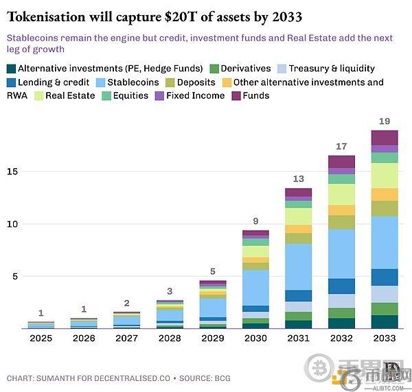 第三阶段将实现质的飞跃,扩展至非流动性资产类别:私募股权、对冲基金、基础设施和房地产抵押债务。要实现这一目标,需达成对**化资产作为抵押品的普遍认可,并建立能服务这些资产的跨行业技术栈。银行和金融机构需在提供信贷的同时,托管这些现实世界资产(RWA)作为抵押品。