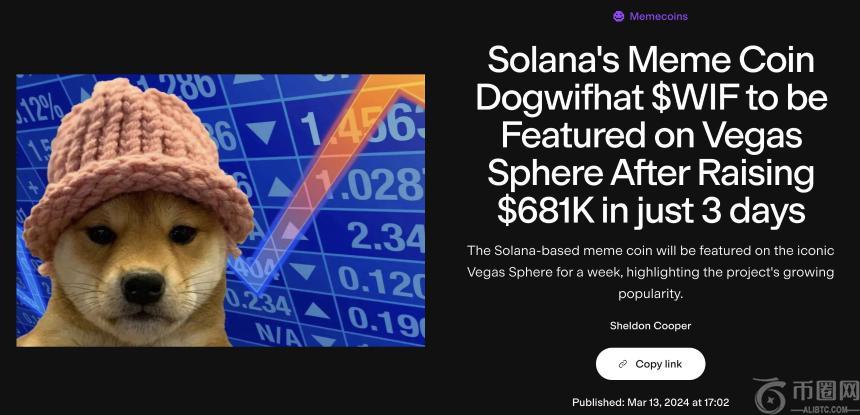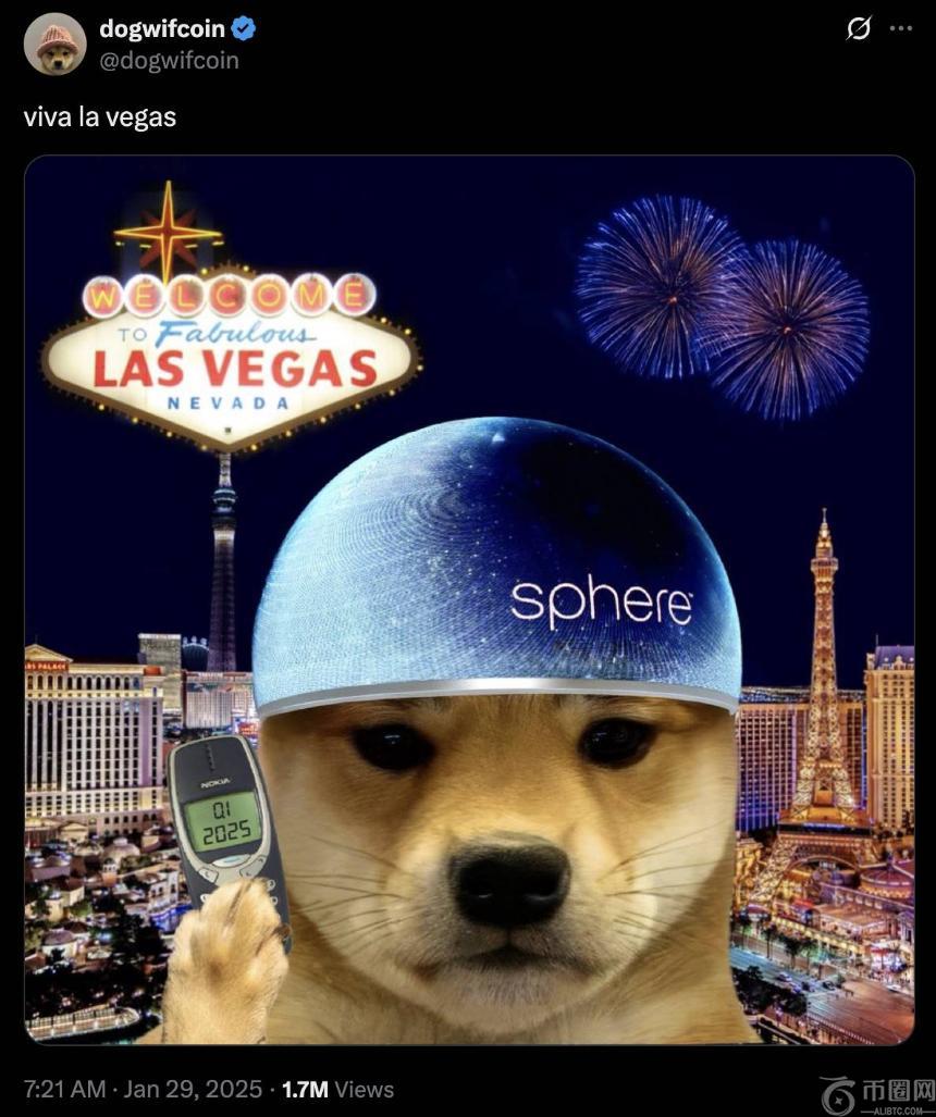 WIF的崛起速度令人咋舌——仅用81天,市值就突破了10亿美元大关。社区的狂热程度超出了所有人的想象。他们不满足于仅仅在网络上传播帽子狗的形象,而是想要做一件前所未有的事情——把WIF投射到拉斯维加斯The Sphere上。这个世界上**的球形LED屏幕,每天都有数百万人经过,如果帽子狗能够出现在上面,那将是meme币历史上**标志性的时刻。