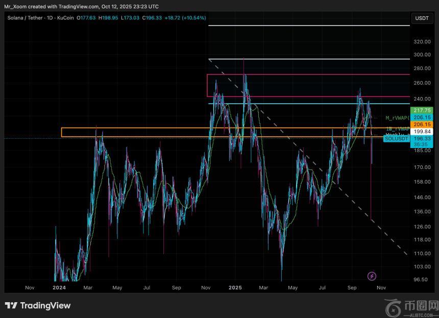 与此同时,分析师Xoom指出,Solana当前在200美元附近的挣扎与之前的阻力区如出一辙。若能成功突破,则可能引发价格快速上涨至240-260美元;但若未能突破,则可能导致价格在180-200美元区间盘整,直至大盘走强。