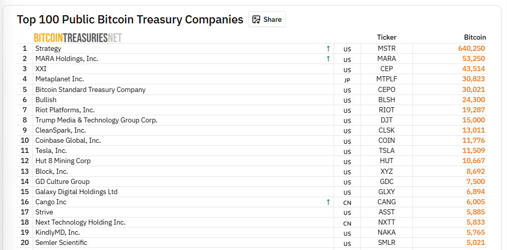 领衔的是 Michael Saylor 的战略 ,即世界上**的持有 640,250 BTC 的比特币持有公司。加密货币挖矿公司也遵循这一策略玛拉控股 ,其**增持后目前持有 53,250 BTC。卢卡斯指出,许多公司在场外购买比特币以尽量减少市场影响,这通常会导致较为平静但持续的增持阶段。