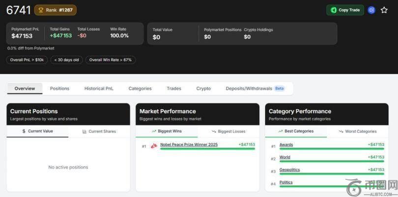 在诺贝尔奖市场中,负责评选诺贝尔奖得主的委员会显然比其他**人都更早知道结果,他们中的一些人可能会悄悄利用这些信息在 Polymarket 上进行交易。