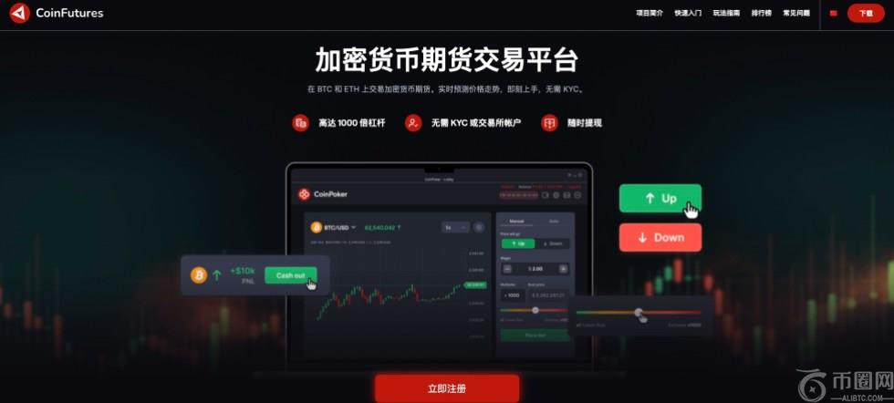 如果想考驗自己對加密貨幣投資眼光,也可使用CoinFutures,這是一個綜合表現優秀的加密貨幣期貨交易平台,主打無需了解你的客户、免註冊帳戶即可交易,並提供模擬真實市場波動的遊戲化交易體驗。用戶可即時預測比特幣、以太幣等主流幣種的價格走勢,並選擇做多或做空,**可使用達1,000倍的槓桿,亦支援止盈與止損設置。雖然平台不涉及實際加密資產,市場數據為模擬生成,但其高靈活性與免驗證的設計,對短期預測型交易者而言具吸引力。平台也支持隨時提領收益,操作門檻極低。