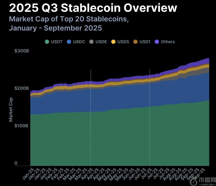 随着市场参与者在交易活动增多的情况下寻求流动性锚,稳定币价格创下历史新高。该行业总市值在第三季度攀升18.3%,达到创纪录的2876亿美元,并在第四季度初短暂突破3000亿美元。