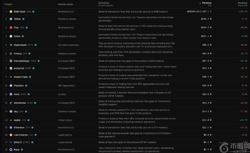截止目前,Aethir 已经创造了 1.159 亿美元收入,其过去 30 天收入达 1280 万美元,超越了以太坊和 Lido。