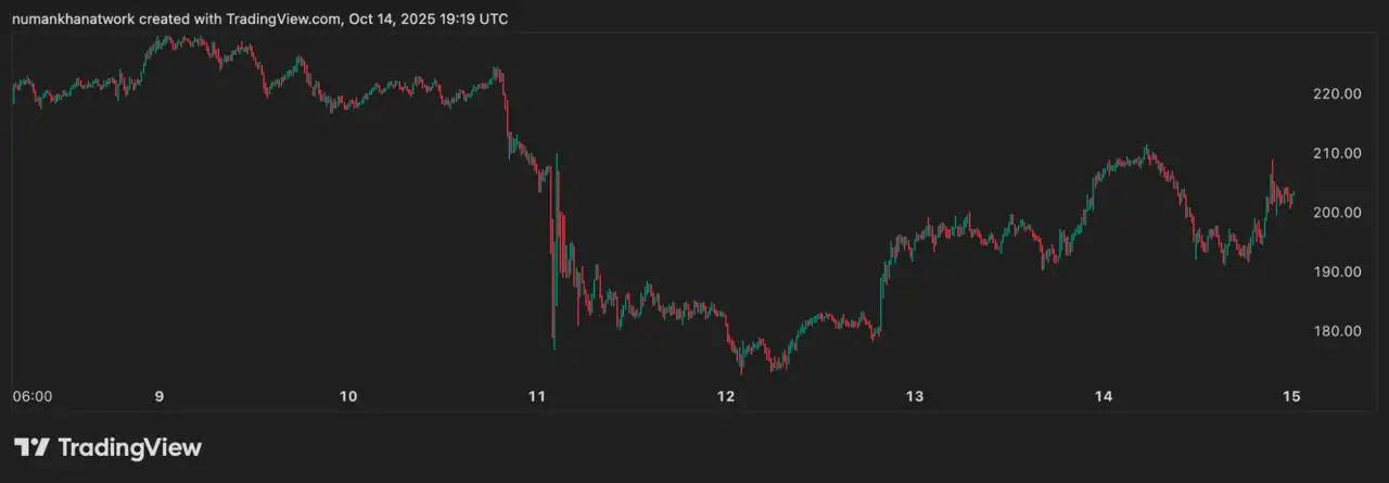 Solana 一如既往地反弹了。这枚**山寨币在 2025 年 10 月 10 日的崩盘中遭受重创,跌破 180 美元。48 小时内,它反弹至200美元以上提醒交易员为什么它仍然是高速的心跳DeFi
