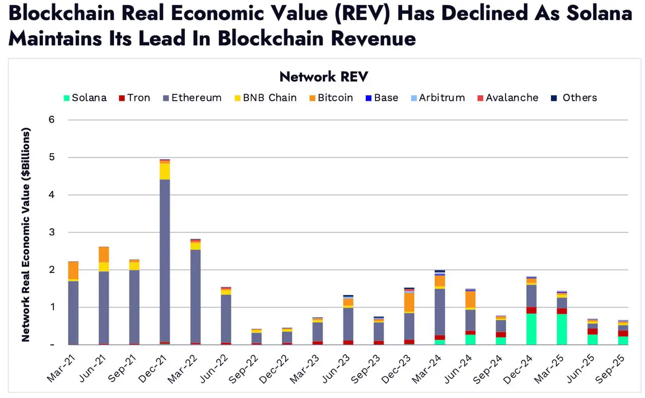 值得注意的是,ARK Invest 最近在其DeFi 季刊:2025 年第三季度报告称,Solana 上季度创造了 2.23 亿美元的实际经济价值。这是所有主要区块链中**的。