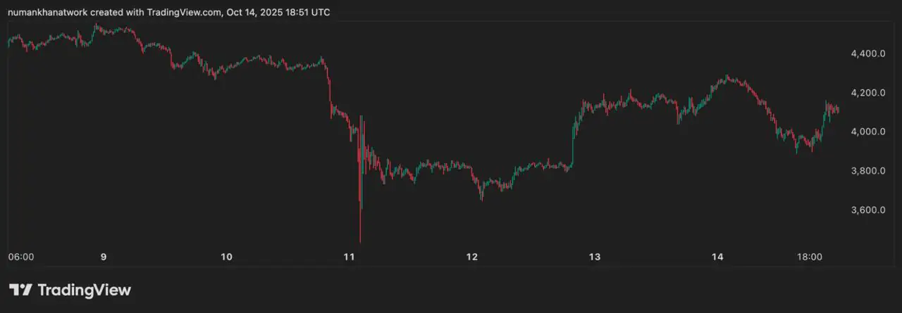 " >山寨币截至 2025 年 10 月 14 日,已回升至 4,100 美元。