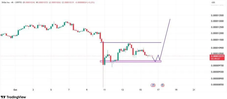 柴犬市值第二大的表情包** SHIB 近期难以从市场下跌中恢复。在 10 月 10 日的大幅回调中,SHIB 跌破关键支撑位,跌至多年低点 0.0000067 美元。该**迅速反弹,收复 0.000010 美元区域,随后短暂攀升至 0.00001129 美元。然而,它很快失去了动力,并反映了大盘的低迷。