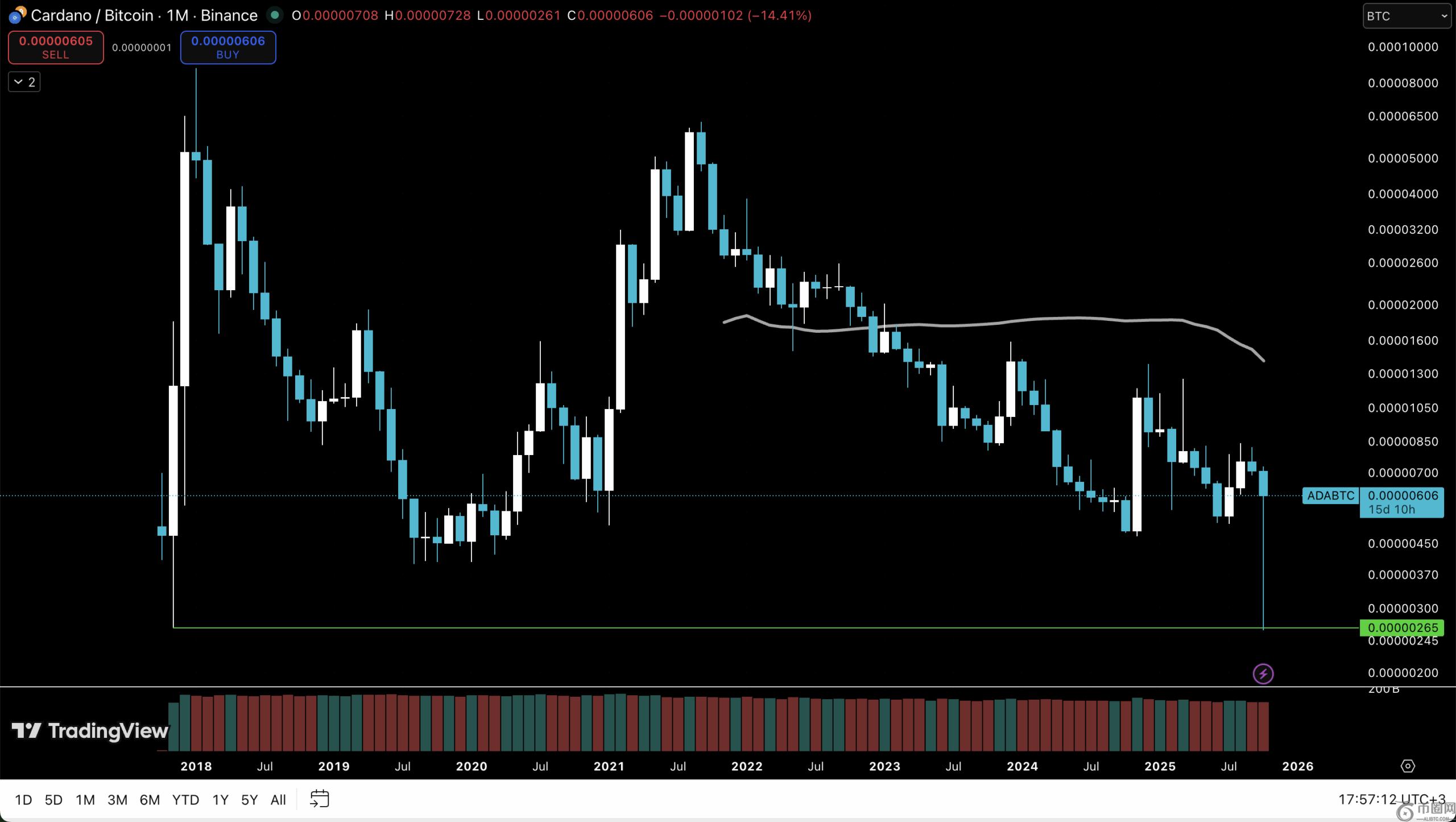 在山寨币季节,ADA 兑 BTC 的走势图值得参考。2018 年和 2021 年就是一个很好的例子。卡尔达诺的价格应该很快会出现类似的走势,这对其持有者来说会很开心。目前它处于区间低点,预计一两个月后它可能会再次触及区间顶部。