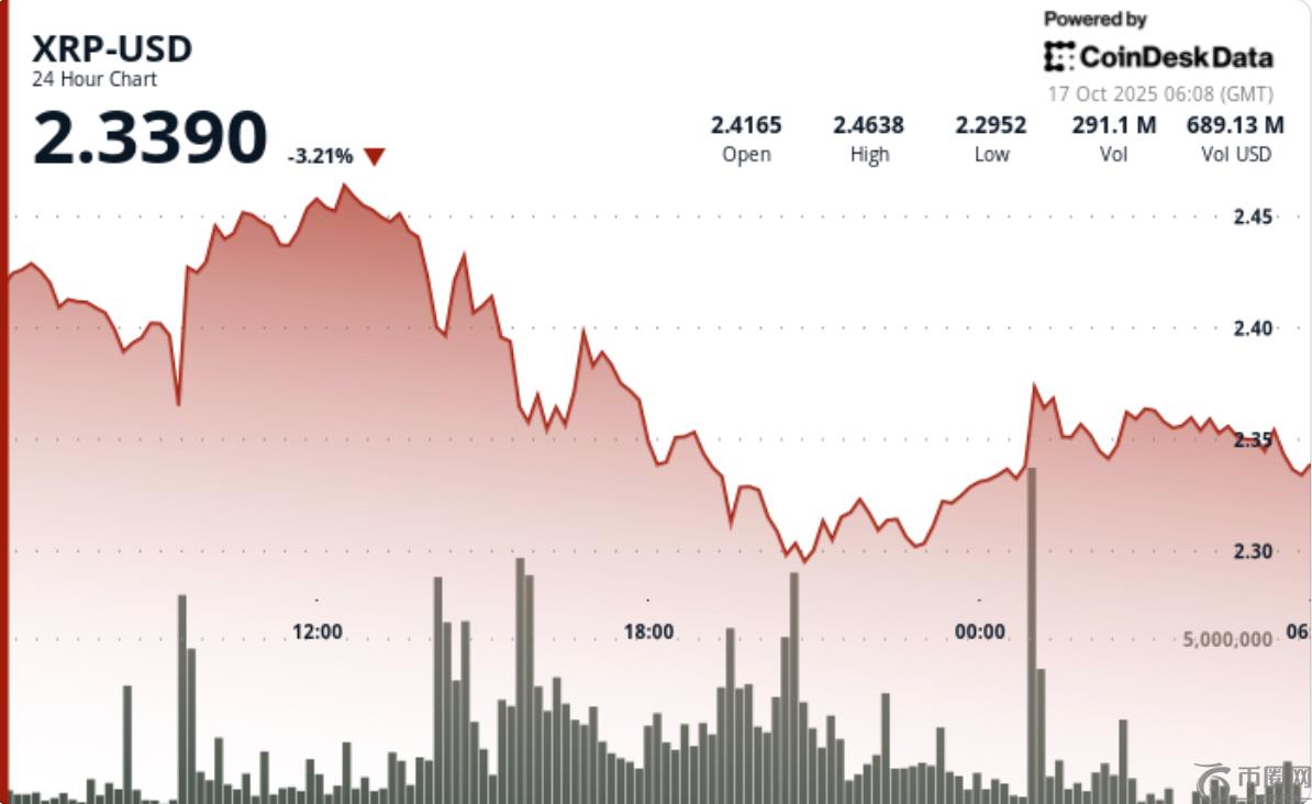 在10月16日至17日的交易时段,XRP延续跌势,在机构持续清算的背景下,从2.41美元下跌2%至2.36美元。市场数据显示,XRP日交易量超过1.5亿,长期持有者在过去两周内减仓34%。 Hodler 净持仓变化指标从 1.637 亿下降至 1.078 亿个**——这是月中波动性飙升后撤资轮换的明显迹象。 尽管出现下降,但随着衍生品交易商在周末的冲击之后开始重建敞口,未平仓合约仍反弹至 13.6 亿美元。 市场部门表示,新的活动可能标志着战术性多头仓位开始转向季末 ETF 投机和宏观宽松信号。价格行为摘要