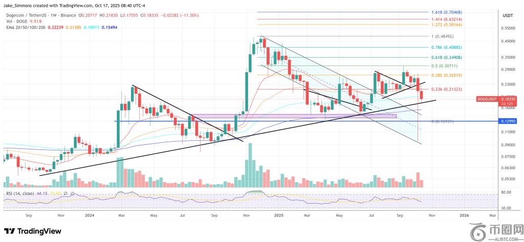 VisionPulsed 非常重视时机。他认为,如果狗狗币在 10 月 22 日至 23 日之前创下更高的低点,就能确认价格走势,而维持价格结构比确定价格更重要。“如果**创下更高的低点,技术上可能是 18 美分或 16 美分……那也没关系。我们会守住趋势线,”他说道。在他看来,如果做不到这一点,****的逆转都将遥遥无期:“如果狗狗币**还是在 11 月崩盘,那我们就涨不起来。就这么简单。时间不多了。”