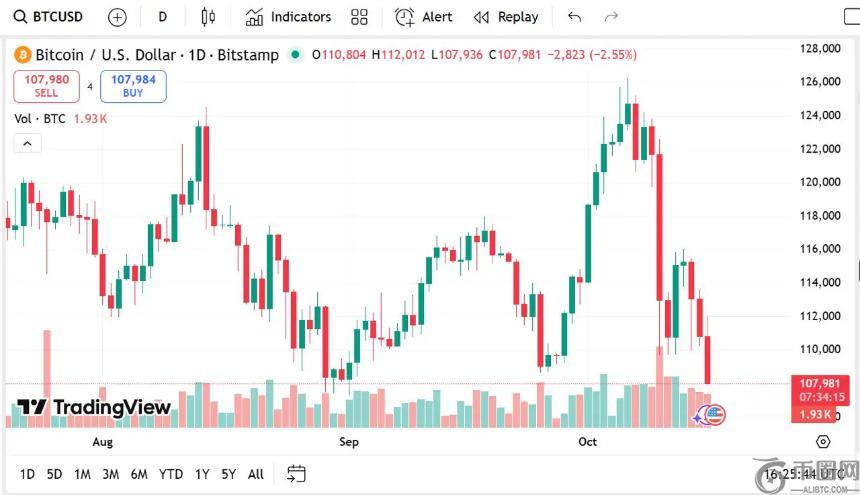 根据**数据,比特币目前价格为107,980美元,过去24小时内下跌0.21%,交易量为733.9亿美元,跌幅达10.35%。这表明市场正在经历短期回调,投资者正消化宏观经济数据及政府扣押事件带来的影响。