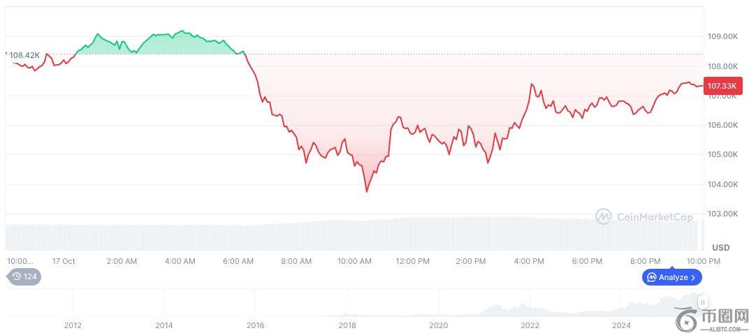 比特币(BTC)日线图,CoinMarketCap 截图,UTC 时间 2025 年 10 月 18 日 03:25。