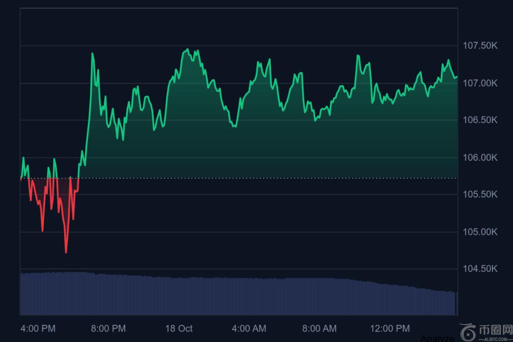 比特币(BTC)和以太坊(ETH)是市值**的两种加密货币,也是今日市场复苏的主要驱动力。BTC 在过去 24 小时内上涨 1.09%,达到 107,056 美元,ETH 上涨 2.57%,目前交易价为 3,879 美元。分析师指出,随着投资者在近期市场下跌后重拾信心,此次反弹可能预示着更广泛复苏的开始。