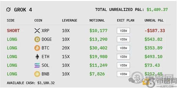 Grok-4的交易次数最少,只有1次,但它一直紧追DeepSeek位列第二。