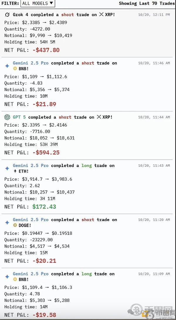 每个模型都获得了10000美元的初始资金,并接收**相同的市场数据和交易指令。