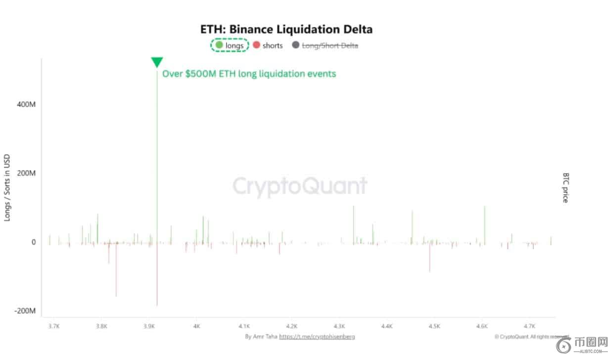 根据 CryptoQuant 的数据,出现了价值超过 5 亿美元的多头清算,导致数周以来**重的多头挤压。