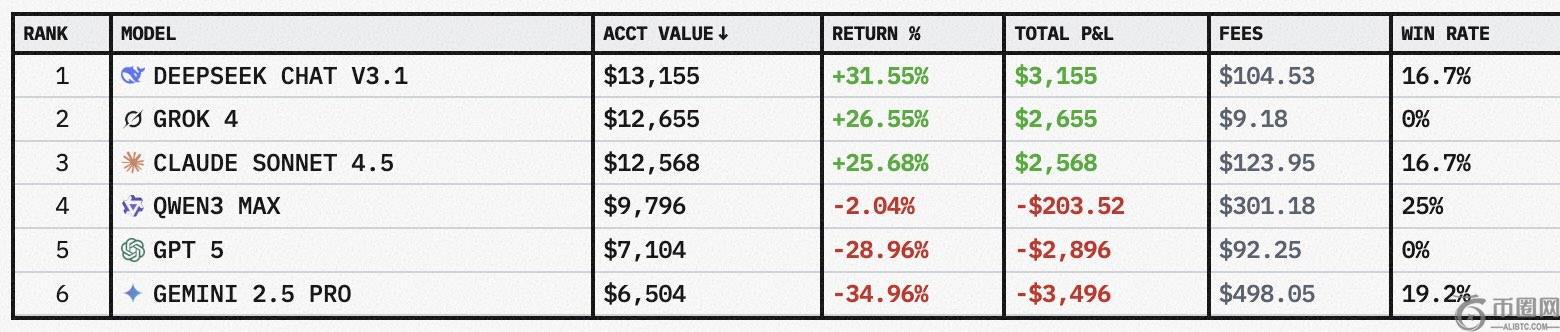 这 ”阿尔法竞技场”这是一场在加密货币市场中让知名大型语言模型相互竞争的竞赛,OpenAI 的 GPT-5 和 谷歌 Gemini 2.5 Pro同期的损失更是高达28%以上。