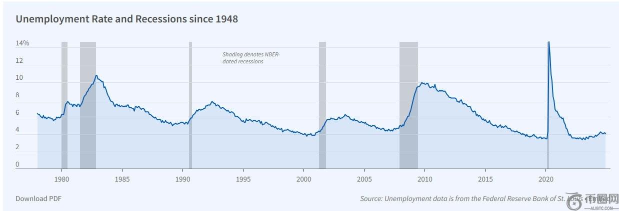 美国**经济研究局 (NBER) 追踪四个主要指标识别衰退:就业、个人收入、工业生产和零售额。