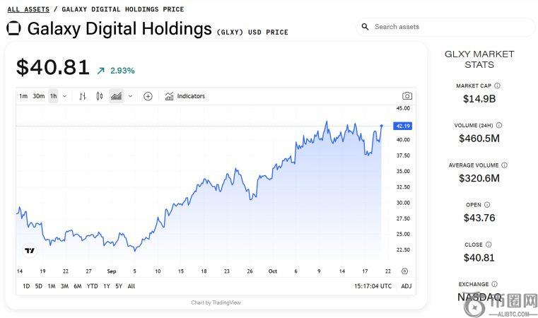 财报公布后,Galaxy 股价一度达到 44.30 美元的历史高点,但随后回落至 42 美元左右。区块的价格数据. 自 4 月初股价低于 10 美元以来,该股已上涨 330% 以上。