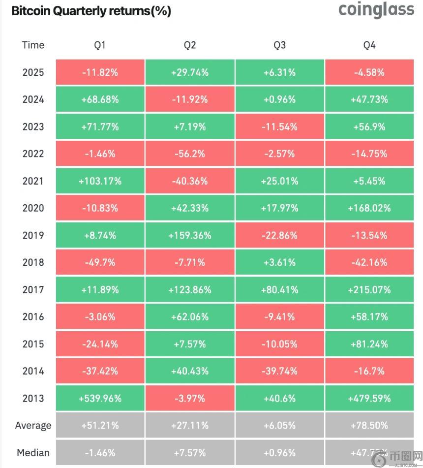 历史数据也为多头提供了一些信心。CoinGlass的数据显示,比特币在第四季度的平均回报率通常高达78.49%。尽管今年十月因更广泛的金融市场担忧导致市场情绪有所减弱,但过去的表现仍让投资者抱有期待。